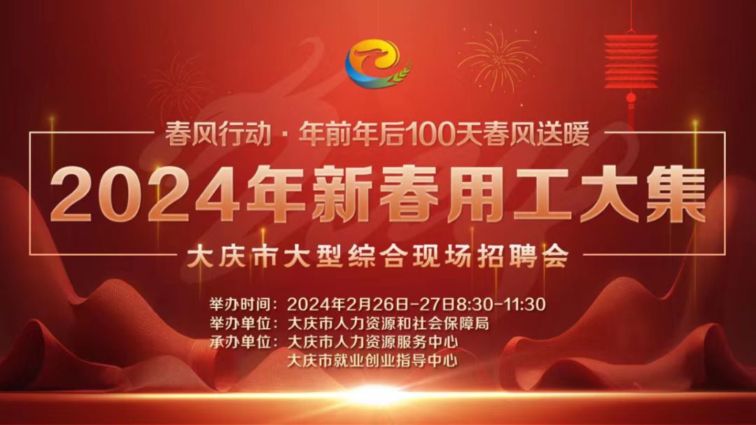 為全面貫徹落實市委、市政府關于穩(wěn)就業(yè)工作部署,按照“年前年后100天春風送暖”就業(yè)服務專項行動安排,大慶市人力資源和社會保障局于2024年2月26日