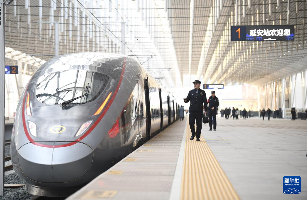 西安開往延安的西延高鐵C9312次首發(fā)列車