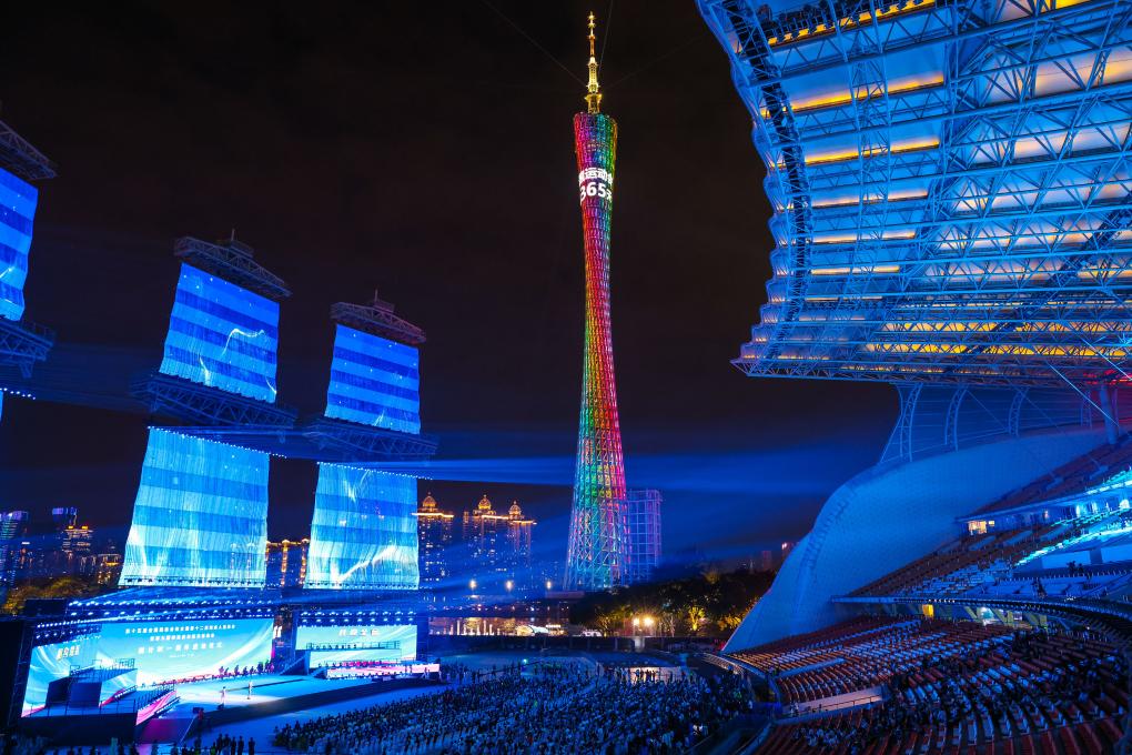 11月9日,十五運(yùn)會的主題口號“激情全運(yùn)會,活力大灣區(qū)”和殘?zhí)貖W會的主題口號“追夢大灣區(qū),出彩人生路”在儀式上發(fā)布。新華社記者 劉大偉 攝