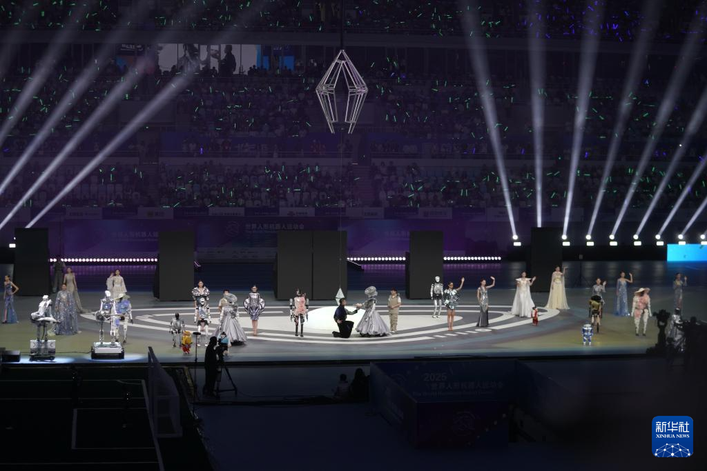??歌舞節(jié)目《歡迎來到碳基生命的世界》中,人類舞者與機器人以流暢協(xié)作演繹“碳基與硅基的對話”;服飾走秀節(jié)目《天工霓裳》則將非遺技藝與未來設(shè)計完美融合……14日的開幕式上,超百支戰(zhàn)隊閃耀“冰絲帶”,各式機甲競展風(fēng)采,機器人街舞、戲曲輪番登場,更與專業(yè)街舞團聯(lián)袂獻(xiàn)藝,生動演繹科技與人類文明的碰撞交融。隨著舞臺中央的“智芯”裝置——鑲嵌藍(lán)色晶體芯片的金屬四棱錐被點亮,2025世界人形機器人運動會正式啟動。